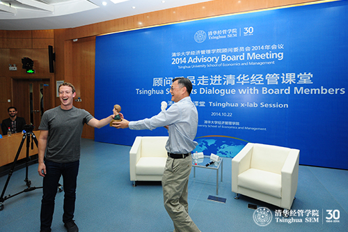Tsinghua SEM’s Dean QIAN Yingyi introduced Board member Mark Zuckerberg to Tsinghua students