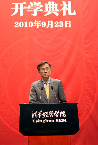 An opening ceremony was held at SEM. On the ceremony Professor QIAN Yingyi, Dean of SEM, introduced five features of Tsinghua EMBA: an outstanding faculty team, extensive international cooperation, careful curriculum design, strict education management, and a strong alumni network. He said, the 2010 EMBA students are lucky to come to Tsinghua campus just before the centenary celebration of the university and at a time when the GDP of China is to become second in the world in 2010. He then stressed the indispensable effect of entrepreneurship in boosting continuing economic development. “The entrepreneurial spirit is of most supreme importance to ensure an enterprise's strength and vigor,” said QIAN Yingyi.