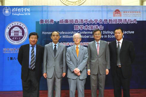 Oliver Williamson,2009 Nobel Prize in Economics Laureate, was invited to be Honorary Professor of Tsinghua University at SEM, where he delivered a speech named “Transaction Cost Economics in Historical Perspective (and the Road to the Nobel Prize)” on the same day and took part in a summit forum held by the Center for Corporate Governance.