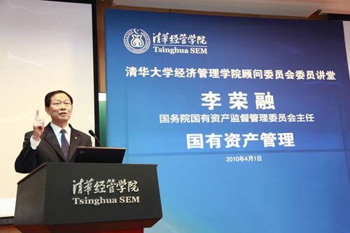 On the afternoon of April 1, 2010, LI Rongrong, Chairman of the State-owned Assets Supervision and Administration Commission of the State Council (SASAC), Tsinghua SEM’s Advisory Board member, delivered a speech themed “State-owned Assets Management” at the School.