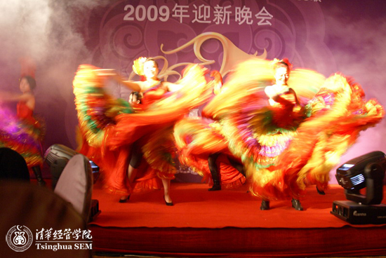 Participants of the Tsinghua-CUHK MBA Program in Finance hosted a New Year Celebration Gala on December 21, 2008. Associate Dean of Tsinghua SEM Tong Yunhuan, Associate Dean Zhu Yan, Assistant Dean Qian Xiaojun, Assistant Dean Zhu Hengyuan, Associate Professor Zhu Yujie, Associate Professor Zhang Lihong, and Professor He Jia, Professor Ruimeng from the Chinese University of Hong Kong attended the gala.