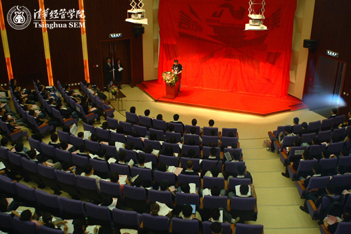 Shenzhen Clou Electronics Co. Ltd and the British Association of Chartered Institute of Management Accountants (CIMA) were the sponsors of this orientation for freshmen. Zeng Yongchun, Vice president of Clou Electronics Group, Han Bing,manager of CIMA North China business development, Zhang Xina, education market development manager, MBA and EMBA alumni representatives, Tsinghua student organizations and Chinese MBA Beijing Union representatives were invited to attend the opening ceremony.