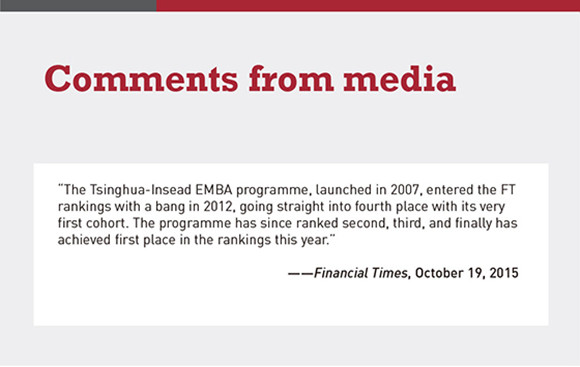 [Feature] Tsinghua-INSEAD EMBA Program Ranked No. 1 Globally by Financial Times EMBA Ranking 2015, First Time for a Mainland Chinese Business School