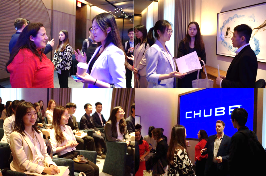 Five Chubb employees shared their experiences with effective communication, career development, and how to become more competitive. They encouraged the students to stay curious, remain willing to take on challenges, and actively participate in cross-cultural communication and cooperation. They also advised students to adopt an objective attitude about job opportunities that place them in different cultures, and to continuously study new technologies and theories to develop their own insights.