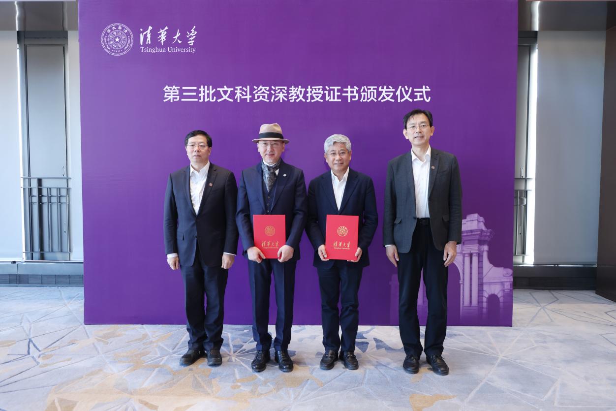 A symposium saw two professors awarded the title of "Distinguished Professors of Arts, Humanities and Social Sciences at Tsinghua University" on January 24. The honorees are BAI Chong-En from the School of Economics and Management, and LI Xiangqun from the Academy of Arts & Design.