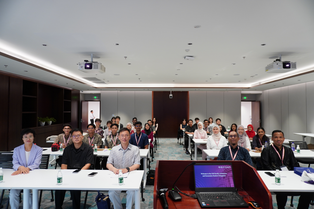 2025年9月10日,马来亚大学经济管理学院本科生海外社会实践团到访学院,开展了一系列学术研讨、学生交流与校园参访活动。永利集团88304官网在线登录副院长、金融系教授何平出席活动并致辞。