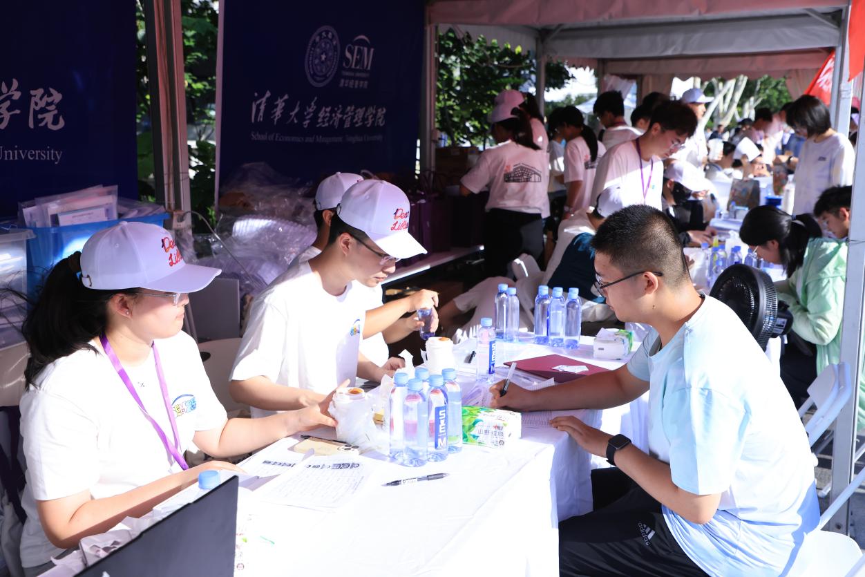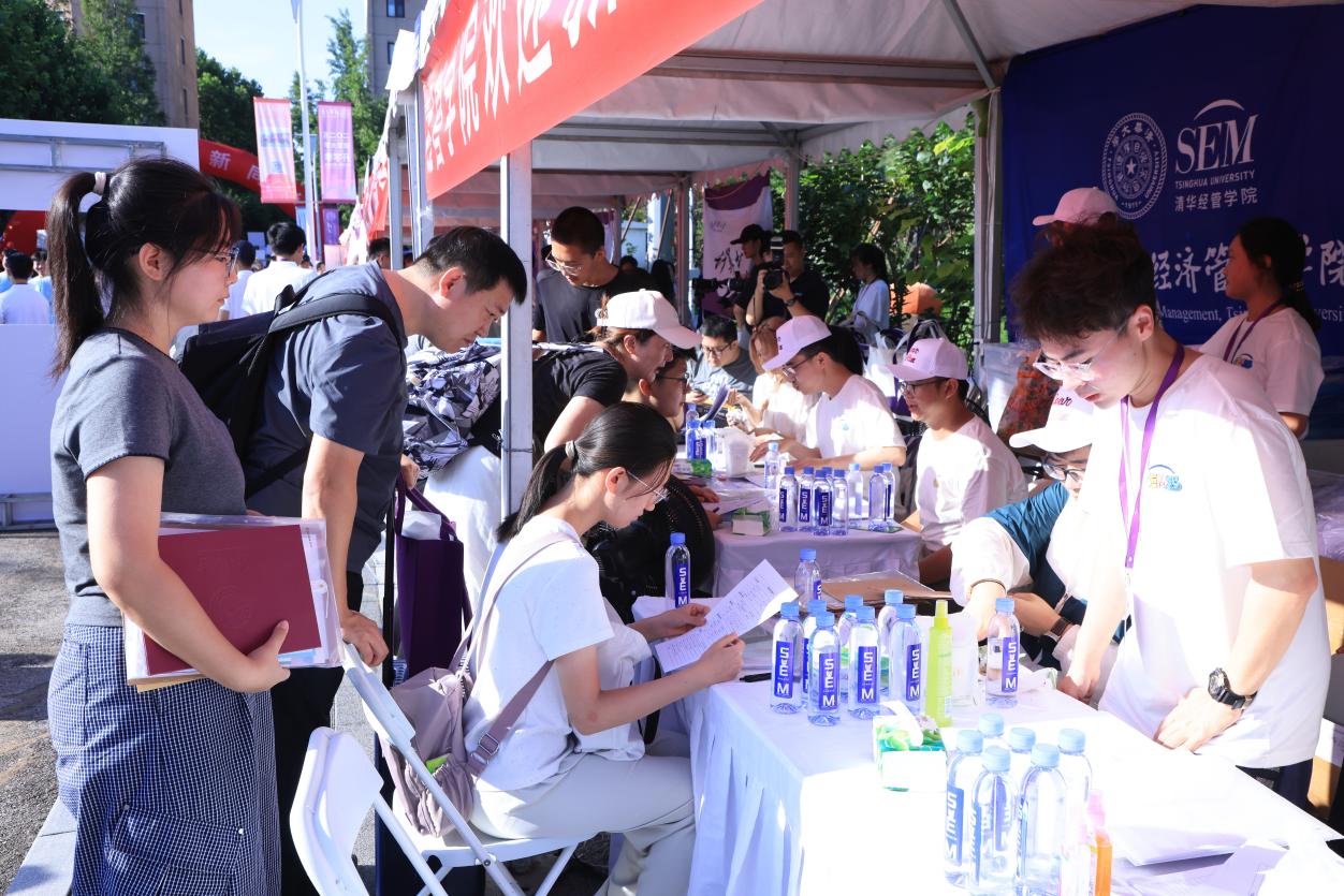清华经管学院党委书记薛健、院长助理林志杰以及相关部门负责人也来到迎新现场,看望报到新生,并与同学们亲切交流。