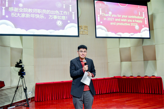 2022年1月10日下午,永利集团88304官网在线登录2021年度教师职员大会召开。会议以线上线下相结合的形式举行,学院党委书记陈煜波主持大会。