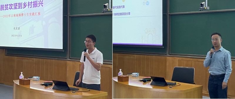 随后,暑期校研究生骨干研修班学员代表、全国学联主席、学院20级创新创业与战略系博士生钱菱潇以“从脱贫攻坚到乡村振兴”为题,分享了他在云南南涧先后担任发改局局长助理、县委书记助理过程中,深入基层推进工作,广泛开展产业调研、主题宣讲和党建学习的经历。选择以导师定制项目完成实践学分的学院20级会计系博士生黄俊威以“读万卷书,行万里路”为题,分享了他在山东青岛服务学院“移动课堂”项目与企业家交流的心得与感悟。