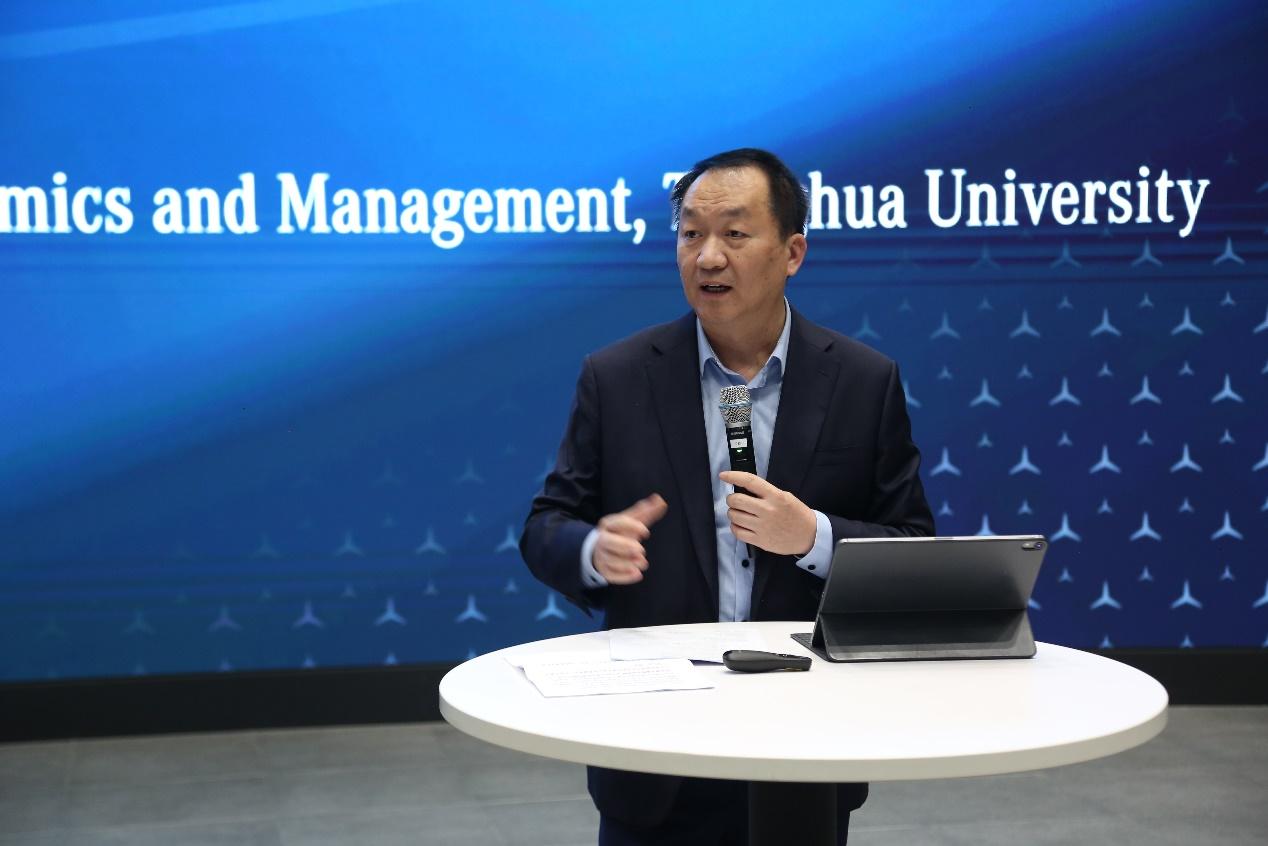“优秀创新创业人才计划”是本科项目2020年开设的“新经管优秀人才培养计划”七个特色项目之一,项目引入理论与实践结合的体验式、开放型教学模式,旨在通过实践学习,培养学生的企业家思维和企业家式的管理素质。本次参访由学院院长白重恩教授、项目授课教师高建教授和院长助理迟巍教授带队。北京奔驰总裁兼首席执行官方铭博(Arno van der Merwe)、戴姆勒大中华区执行副总裁冷炎以及戴姆勒大中华区梅赛德斯-奔驰汽车驱动系统及技术研发中心中国执行副总裁丹尼尔·纳瓦罗(Daniel Navarro Rios)出席活动并进行分享。