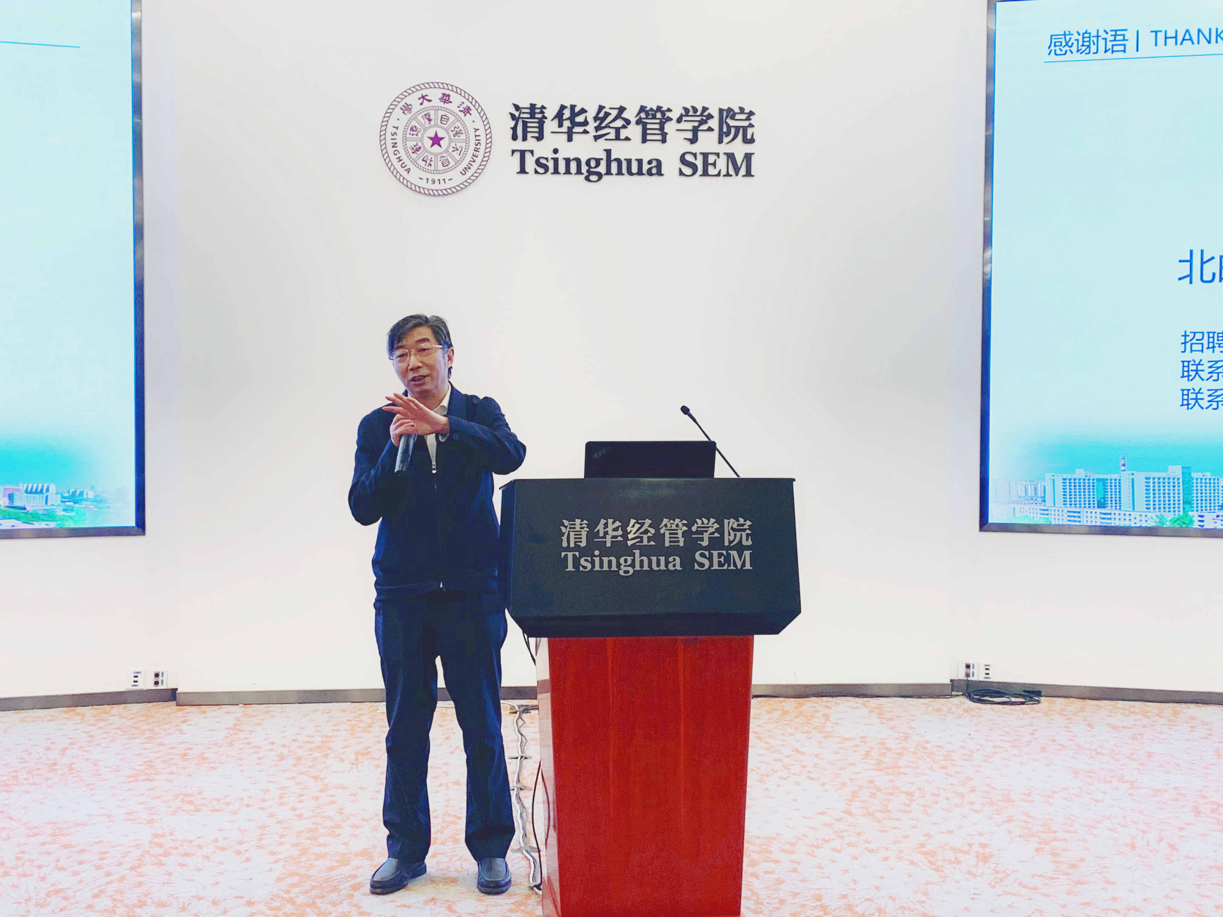 宣讲会上,迟巍在致辞中表示,知名高校能够来现场为同学们宣讲是非常难得的机会,希望清华经管学院的博士生能够抓住机会,与北邮的老师们进行深度沟通和交流。赵晨对北京邮电大学及北邮经管学院进行了简要介绍,并重点说明了学院对各类人才的引进要求及相应支持。