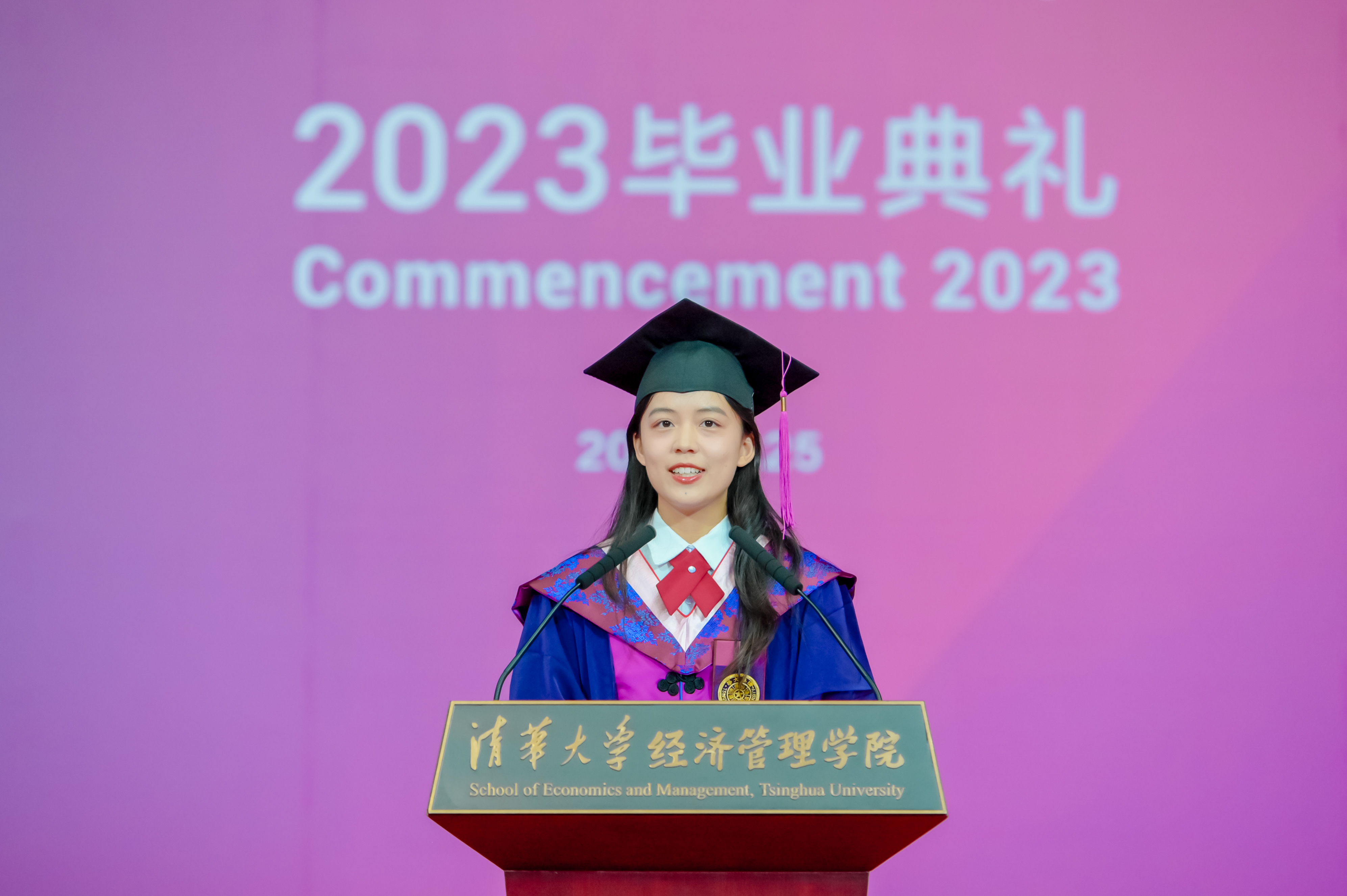 经管学院是一个跨越时空的大家庭。大一时,我加入了经管团委校友组。四年间,我参与举办了二十余场校友沙龙,迎接了三届校友导师。相信不少在座的同学都曾从与校友的交流中收获过温暖。还记得在大一、大二的几次校友沙龙上,校友们反复提到:“对未来无需焦虑,把眼光放长远,每位同学都会收获充实的成长”,这句话给了当时的我对未来很大的信心。到了高年级,对职业发展有了更多了解的我们看到了这些校友在各自的领域兢兢业业。无论身处哪个平台,他们不仅关心产业、经济的发展,也关注社会福祉与后辈的成长。现如今,我们也即将走入人生的下一程,希望无论走到哪里,都能不忘初心,做一个有温度的经管人,带着专业知识,积极投身到推动国家经济发展和人民幸福的宏大事业中。