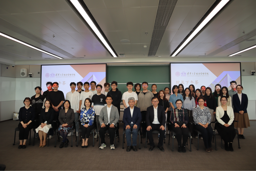 2024年4月25日下午,由清华经管学院学生会主办的“院长下午茶”活动在建华楼举行。活动旨在搭建师生面对面交流的平台,解答学生疑问,促进学生的全面发展。清华经管学院院长白重恩,副院长何平,党委副书记高峰,院长助理迟巍、张晨,信管专业学术协调人郭迅华,会计学学术协调人张海燕,教学办执行主任张磊,职业发展中心主任顾英杰,党委学生组组长孔奕淳,学生工作事务办公室副主任刘玥等出席本次活动,30余名来自不同年级的本科生代表参会。与会老师围绕课程学业、就业深造、学院建设发展、生活权益等话题与同学们进行了深入交流。活动由2022级本科生张楚涵主持。