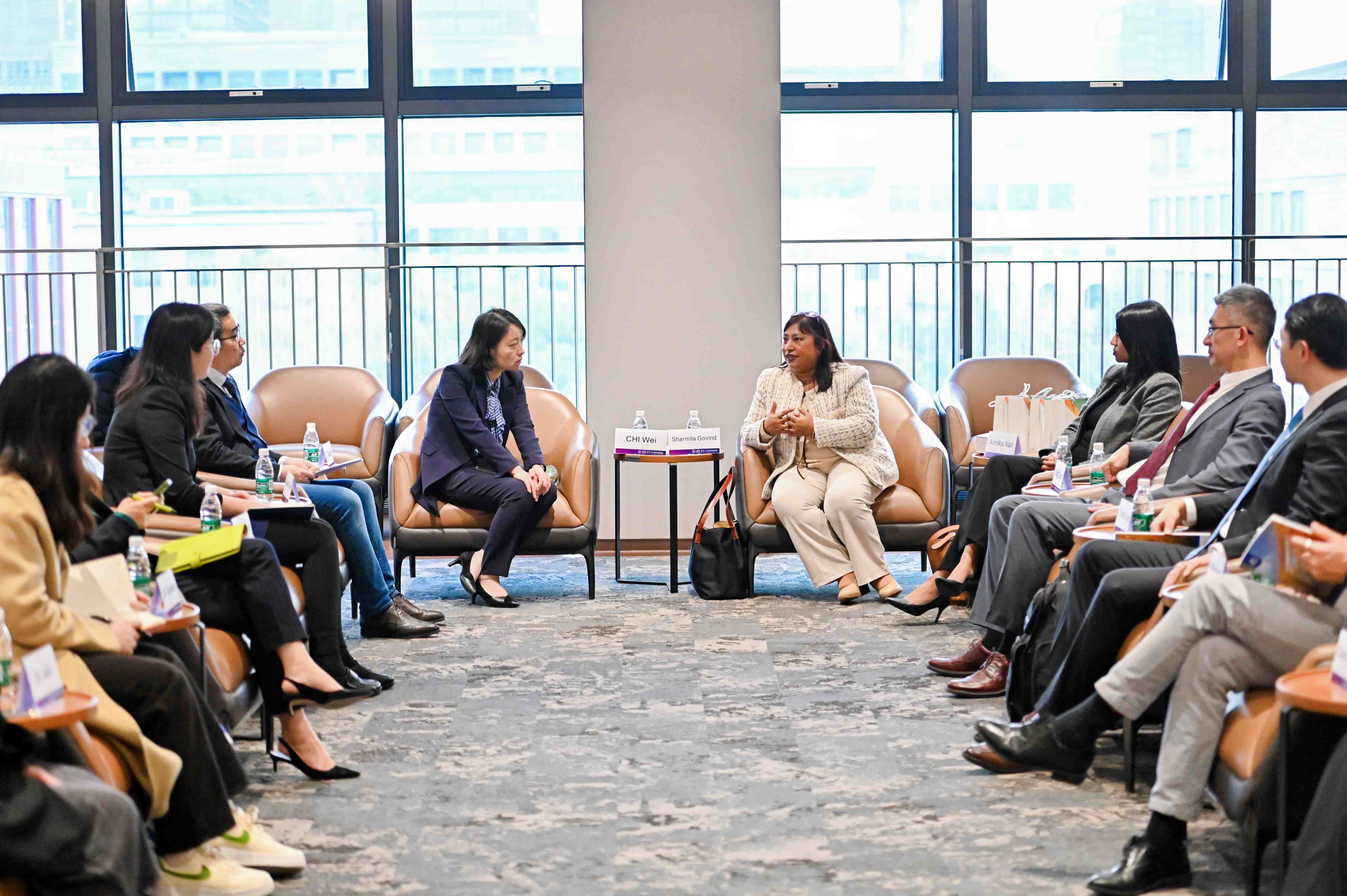 2024年11月14日,金砖国家新开发银行(New Development Bank, NDB)人事局局长莎米拉·戈文德(Sharmila Govind)一行访问清华经管学院,作题为“2024年金砖国家新开发银行招聘会:使命与运营”的讲座,并与永利集团88304官网在线登录、社会科学学院、唐仲英学生全球发展中心相关教师会谈交流,就双方开展人才合作展开讨论。