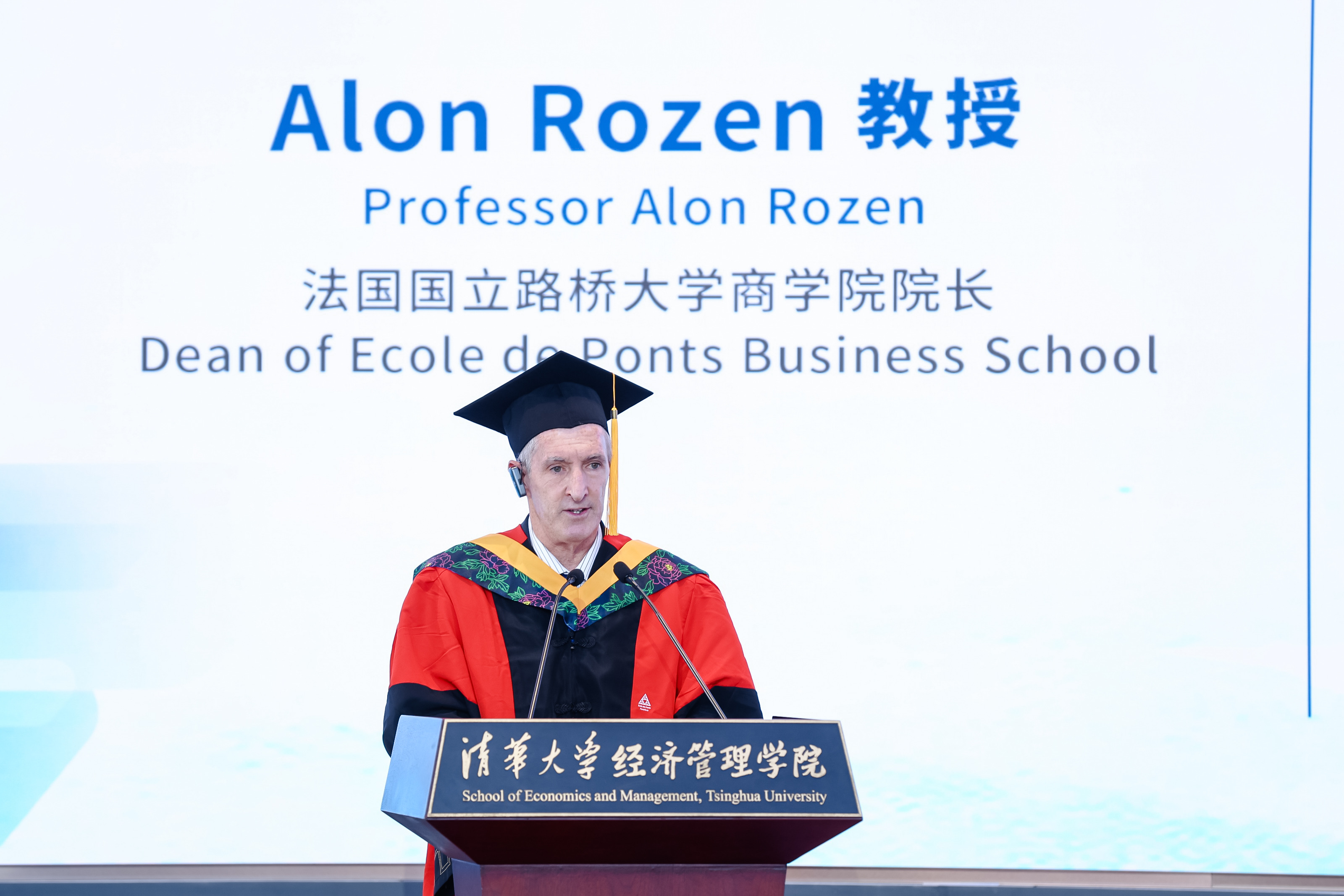 阿龙·罗森致辞指出,毕业典礼是过去学习与未来机遇的交汇点。他提到“学无止境”的理念,认为终身学习是EMBA旅程的核心,并赞扬毕业生们展现了决心和勇气。同时,阿龙·罗森表示,毕业生已成为全球校友社区的一部分,鼓励他们保持联系并贡献自己的力量。最后,他引用老子的名言“千里之行,始于足下”,鼓励毕业生继续前进,勇于探索,永不停止学习。