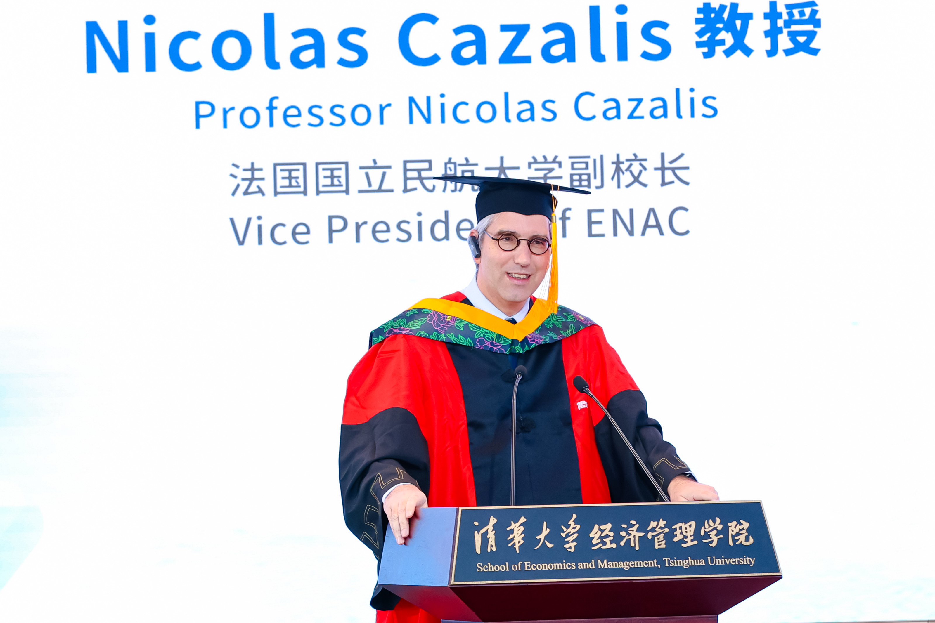 尼古拉•卡扎利斯在致辞中强调了项目的培养目标,即培养学生在管理、技术专业能力及创新体系战略认识方面的能力,以应对国内外市场的需求,还介绍了法国国立民航大学的成就,并欢迎毕业生加入其校友网络。最后,尼古拉•卡扎利斯鼓励毕业生保持诚信等品质,祝愿他们未来的事业取得更大的成就。