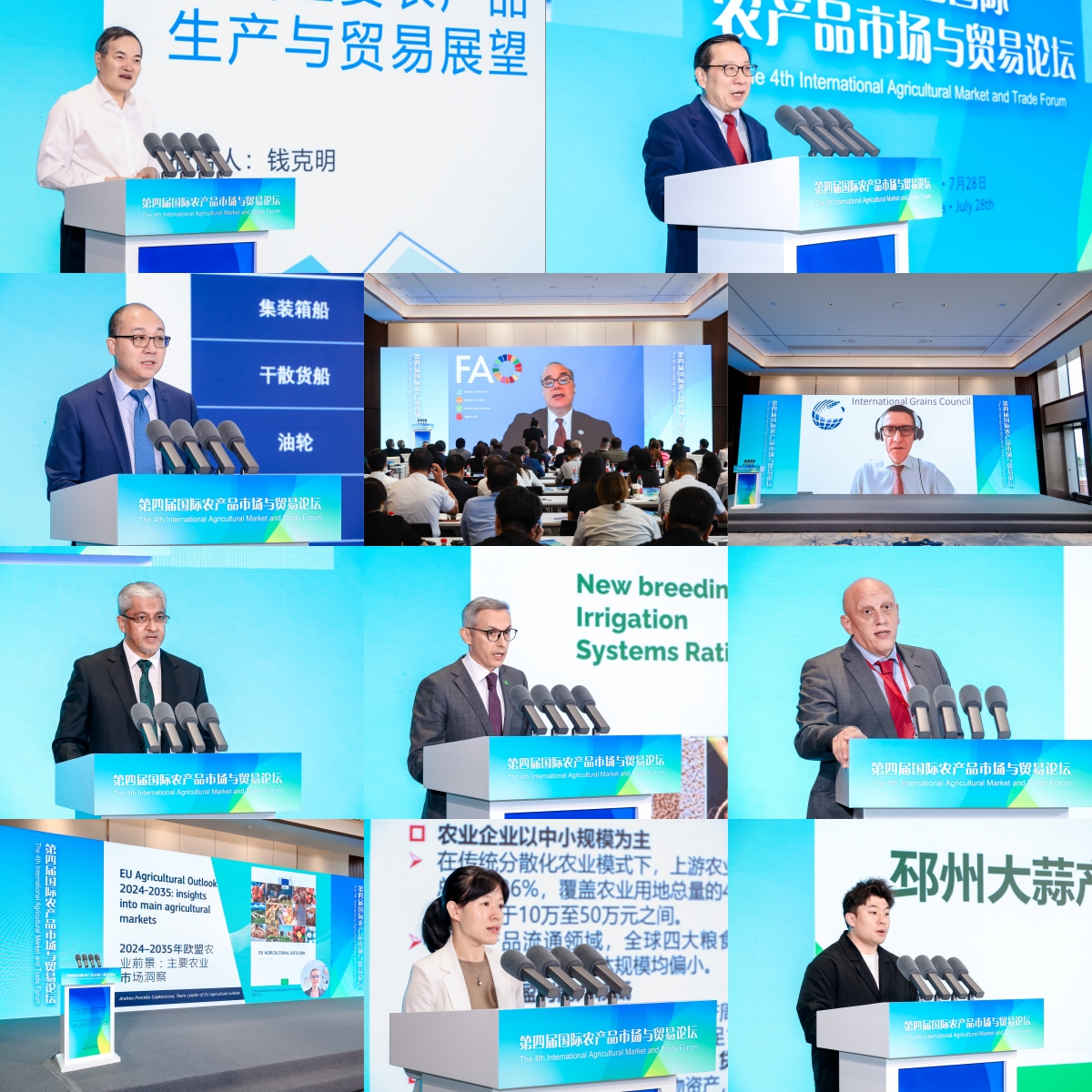 在主旨演讲环节,第十四届全国政协常委、商务部原副部长钱克明,全球化智库副主任高志凯,中远海运散货运输有限公司副总经理魏国栋,联合国粮农组织首席经济学家马克西莫·托雷罗·库伦(Máximo Torero),国际谷物理事会执行董事阿诺德·珀蒂(Arnaud Petit),南非驻华使馆代办、公使巴什迪(Mogamat Mahdi Basadien),巴西驻华使馆农业参赞陈健飞(Jean Felipe Celestino Gouhie),西班牙驻华使馆农业参赞阿方索(Alfonso Pino Maeso),欧盟委员会农业与农村发展总司农业前景团队负责人安德烈娅·波切拉·卡普科维科娃(Andrea Porcella Capkovicova),中国银行研究院专家廖淑萍以及江苏黎明食品集团有限公司总经理张宇昂等11位嘉宾分别就2025年全球和国别生产与贸易形势、金融服务农产品贸易、企业农产品贸易高质量发展实践等议题进行分享。