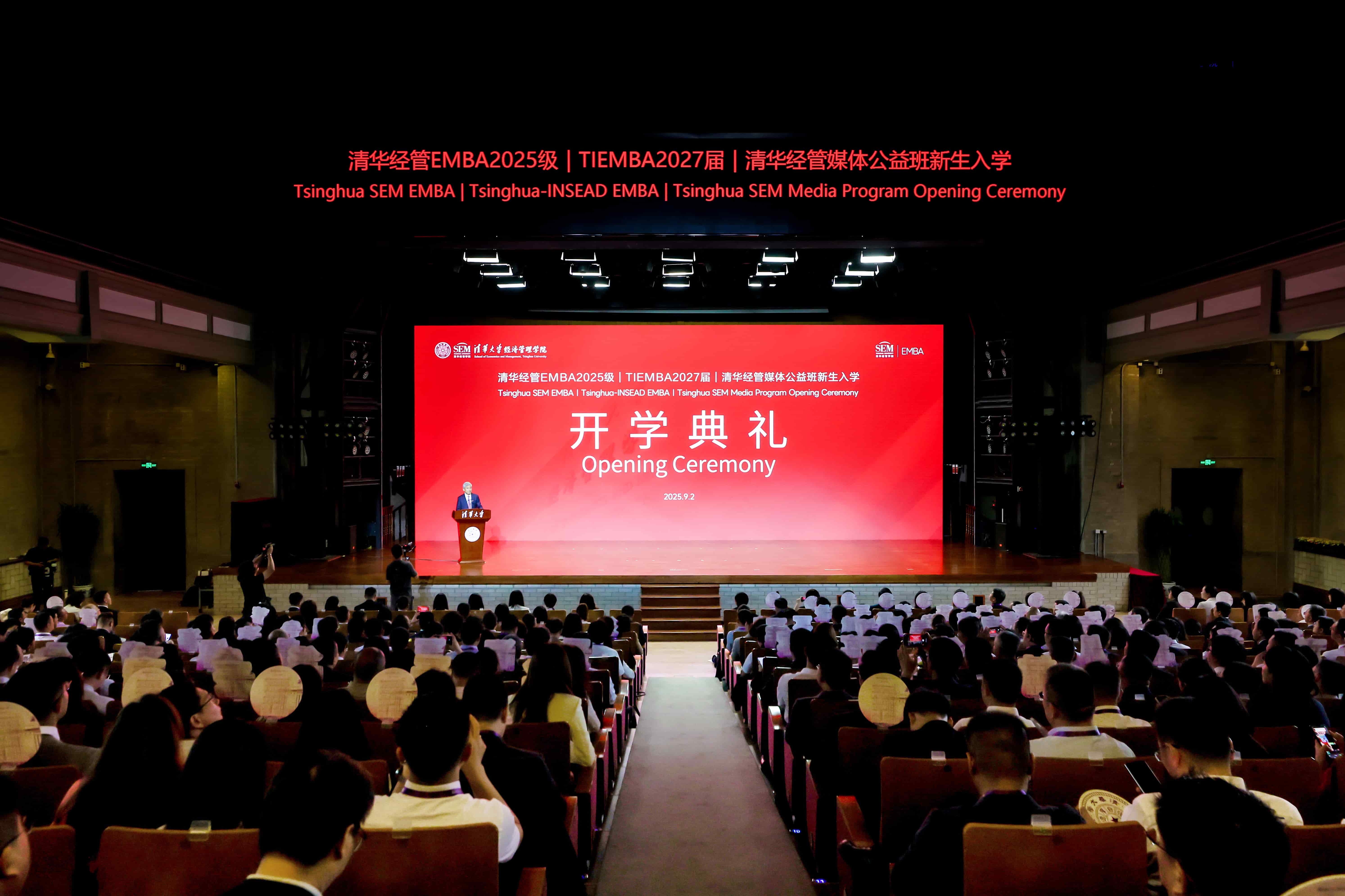 2025年9月2日,清华经管EMBA2025级、清华-INSEAD双学位EMBA(TIEMBA)项目2027届和清华经管媒体公益班新生开学典礼在永利集团88304官网在线登录大礼堂举行。清华经管学院院长白重恩,清华经管学院党委书记薛健,TIEMBA项目合作方欧洲工商管理学院(INSEAD)学术主任罗小薇,清华经管EMBA教育中心主任庄丽等出席典礼。开学典礼由薛健主持。