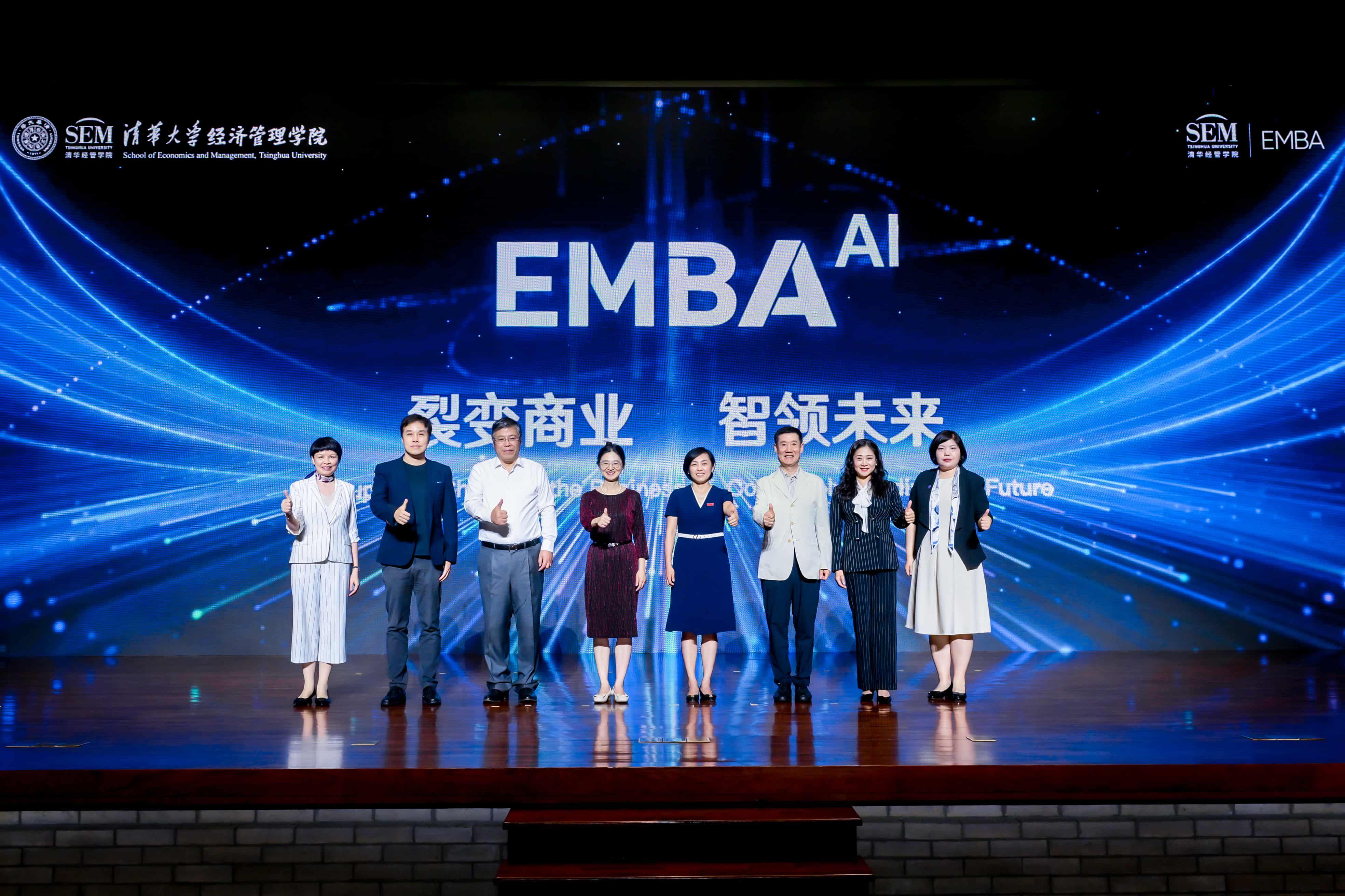 随后,薛健,罗小薇,清华经管学院会计系教授、EMBA科技创业方向责任教授陈晓,清华经管学院市场营销系教授、EMBA产业转型方向责任教授李飞,清华经管学院管理科学与工程系教授、EMBA AI与数字方向责任教授卫强等共同发布了清华经管EMBA课程AI融合升级计划。