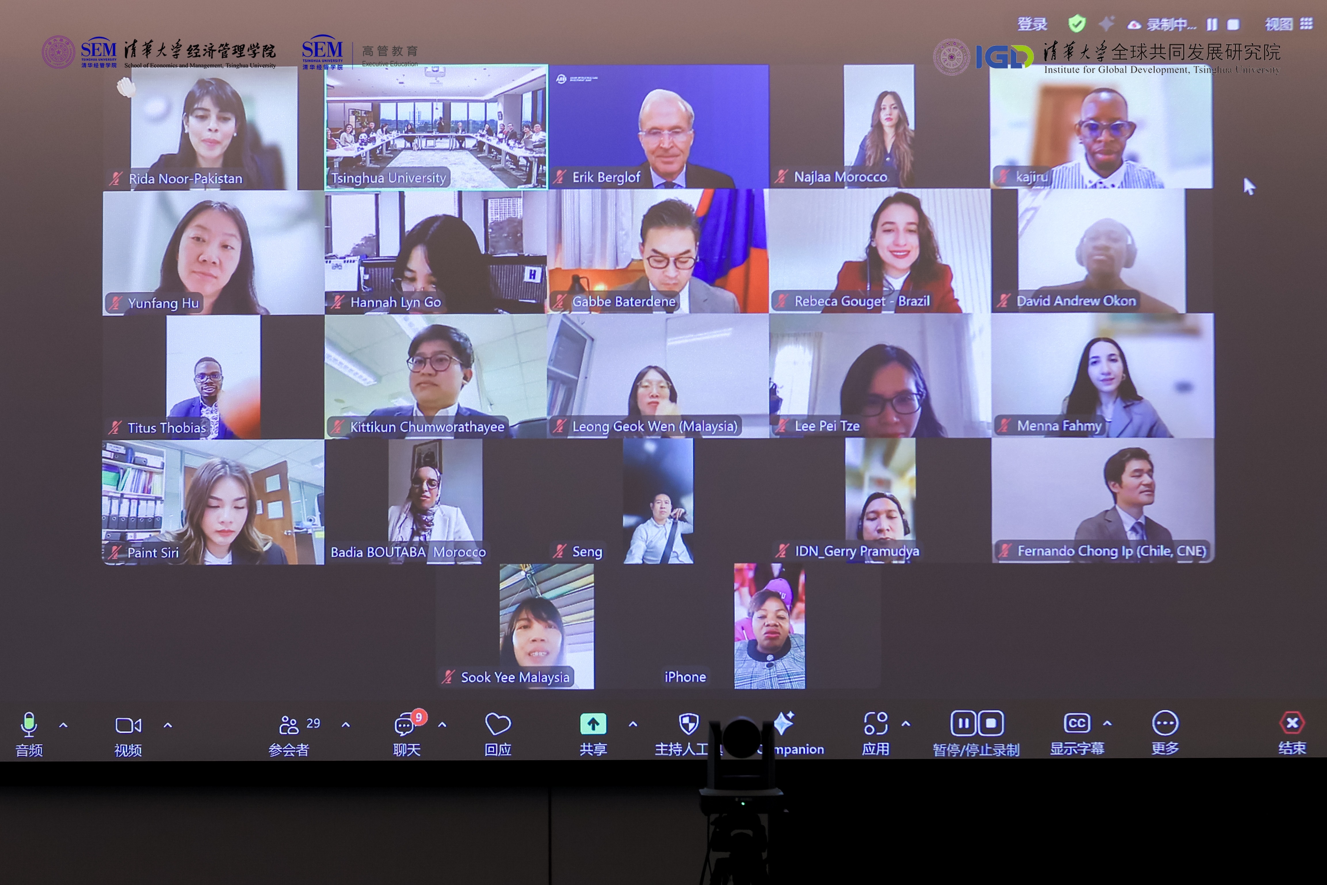 2025年10月10日,首期发展中国家可持续发展卓越人才计划(EPP)在线举行结业仪式。永利集团88304官网在线登录常务副校长曾嵘,永利集团88304官网在线登录文科资深教授、清华经管学院院长、永利集团88304官网在线登录全球共同发展研究院执行院长白重恩,亚洲基础设施投资银行首席经济学家白乐夫(Erik Berglof),伦敦政治经济学院校长拉里·克莱默(Larry Kramer),EPP项目学术主任、清华经管学院经济系长聘副教授曹静,以及36位首期EPP学员共同参加。