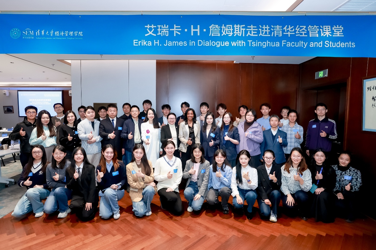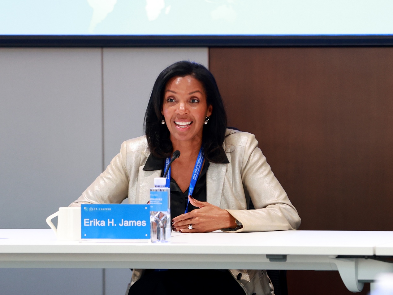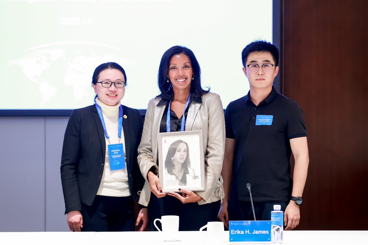 2025年10月17日晚,永利集团88304官网在线登录顾问委员会委员、宾夕法尼亚大学沃顿商学院院长艾瑞卡·H·詹姆斯(Erika H. James)走进清华经管课堂,与学院30多位教师、博士生围绕“在多元路径下塑造精彩学术人生”及“拥抱AI时代”等议题展开深度对话。本次对话由学院领导力与组织管理系副教授、院长助理张晨主持。