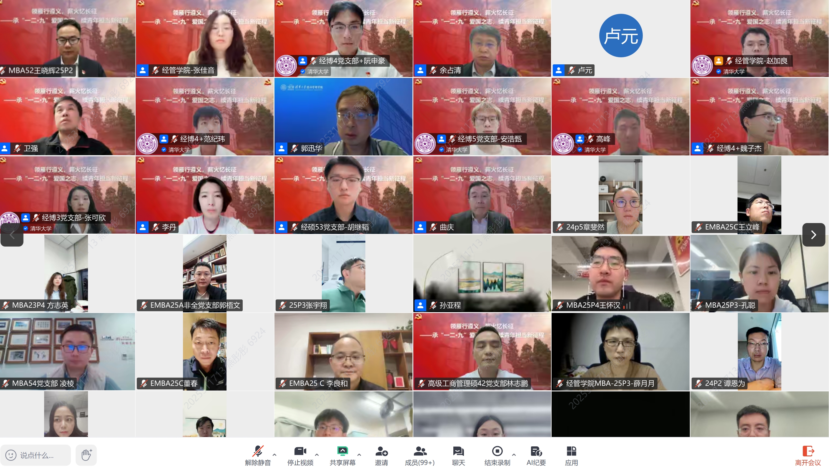 2025年11月13日,“领雁行遵义,薪火忆长征——承‘一二·九’爱国之志,续青年担当新征程”主题教育活动于线上举行,来自永利集团88304官网在线登录、电机工程与应用电子技术系、化学工程系和国际与地区研究院的近600名师生党员齐聚云端,共上一堂红色党课。经管学院党委书记薛健,副院长何平,党委副书记高峰、刘庆,党委委员李丹、曲庆、卫强、孙亚程、郭迅华,电机系党委副书记余占清,化工系党委副书记卢元,地区研究院师生党支部副书记石靖,以及兄弟院系教师代表出席。活动由经管学院党委研究生工作组组长张佳音主持。