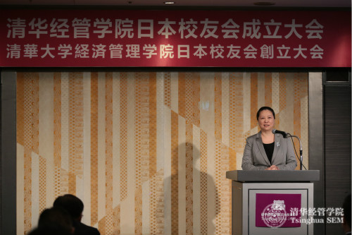 中国驻日本大使馆公使郭燕女士在清华经管学院日本校友会成立大会上致辞