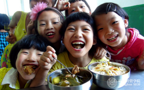 “农村义务教育学生营养改善计划”覆盖学校的孩子们正在享用他们的“阳光校餐”