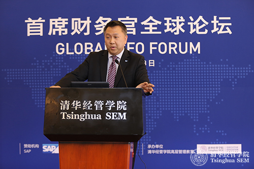 新加坡管理大学会计学院院长程强教授在清华经管学院首席财务官全球论坛暨首席财务官高级硕士项目说明会上致辞