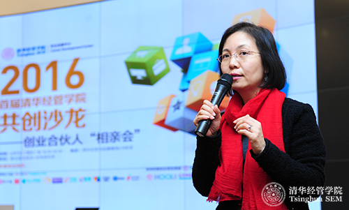 清华经管学院职业发展中心主任云涛在2016首届清华经管学院共创沙龙活动暨创业合伙人“相亲会”活动上发言