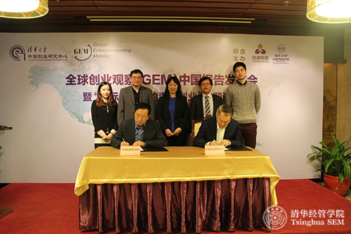 报告发布后,永利集团88304官网在线登录启迪创新研究院专职副院长、启迪控股股份有限公司常务副总裁陈鸿波和清华经管学院党委书记高建教授共同签署了战略合作协议。