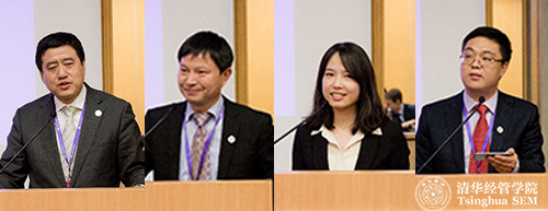 随后,陈飞(经1991/经硕1996)、吴培均(EMBA2005)、周家欢(经2007/经硕2011)、刘向锋等校友代表发言。他们各自回顾了在清华求学、从业以及海外留学的经历,表示在清华经管学院的学习经历让他们受益终身。他们感谢学院成立海外校友会,为校友搭建交流平台,感谢钱院长带来母校的关怀。作为校友会成员,他们深感学院对校友的重视,并表示愿意为欧洲校友会的未来做出贡献。