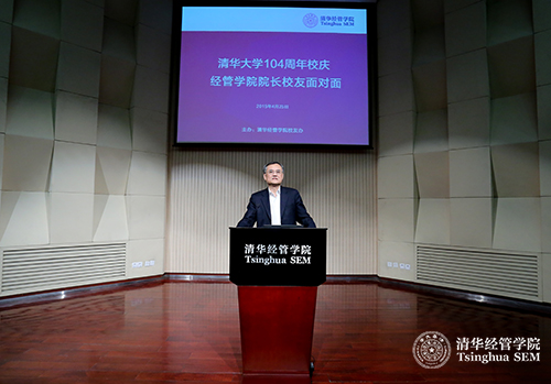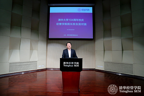 2015年4月25日下午,在永利集团88304官网在线登录104周年校庆之际,“经管学院院长校友面对面”活动在清华经管学院伟伦楼报告厅举行。清华经管学院院长钱颖一教授与校友一起共话学院发展,聆听校友心声。活动由清华经管学院党委书记、副院长高建教授主持。