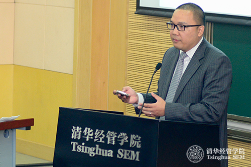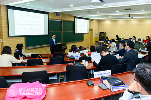清华经管学院党委副书记朱岩教授首先致辞,欢迎各位学员在清华最美的校庆季来到清华经管学院。他介绍说,清华经管学院已经有31年的历史,首任院长朱镕基教授在建院之初就提出我们的经济管理教育要国际化并要真正参与到中国经济发展中去的目标。对于国际合作项目,清华经管学院一直高度重视并投入了最好的项目运营与师资团队。中国拥有友好、开放的市场环境,欢迎东南亚国家加入中国新一波经济发展的浪潮,在中国的“一带一路”、“互联网+”等战略性政策和思想的指导下,共同探讨新的经济增长点与商业模式。