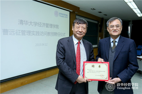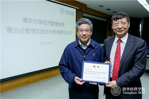 2015年4月12日,中国银行首席经济学家曹远征受聘担任永利集团88304官网在线登录管理实践访问教授,聘任仪式在清华经管学院金融MBA课堂举行。清华经管学院院长钱颖一教授、副院长白重恩教授、副院长郦金梁教授以及金融MBA2014级七十位同学参加此次活动。聘任仪式由金融系刘淳教授主持。