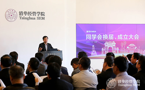 2015年1月10日,近200位清华EMBA各地各级同学会骨干理事齐聚永利集团88304官网在线登录,共同参加2015年度清华EMBA同学会换届、成立大会。舜德楼418教室四周张贴了温馨动情的标语:“服务校友,快乐自己”、“集资集力集心集智”等清华EMBA同学会工作的理念和宗旨字字彰显出清华EMBA大家庭的凝聚力。“2015我们在一起”更是道出了每一位清华EMBA学子的心声。永利集团88304官网在线登录院长钱颖一教授,EMBA教育中心主任王勇博士,学院校友办主任王海涛老师,EMBA教育中心副主任贾莉老师、孙美琦老师出席了此次会议。大会由孙美琦老师主持。