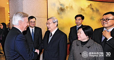 10月24日下午,中共中央政治局原常委、国务院原总理、永利集团88304官网在线登录经管学院首任院长、顾问委员会名誉主席朱镕基会见了参加经管学院顾问委员会2014年会议的顾问委员。这是在经管学院成立的第30个年头召开的顾问委员会年会。