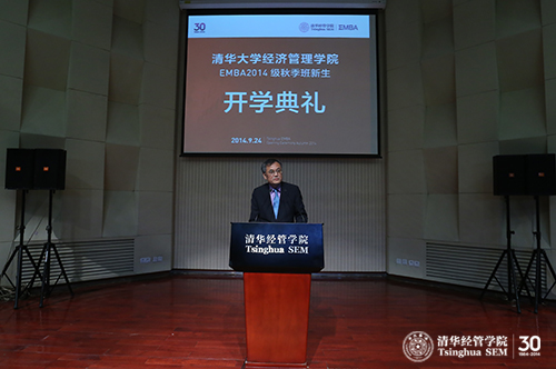 钱颖一院长说:“同学们的入学正值清华经管三十风采。三十年来,经管学院抓住机遇,伴随中国经济的高速增长而快速发展。在经历了三十年的快速发展之后,经管学院站在了一个新的起点上,也进入了一个新的发展阶段。”随后,钱颖一院长以“新常态”为主题与同学们分享了自己的思考。