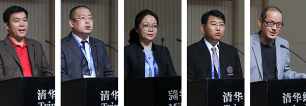 EMBA14-D班何建刚同学、14-E班王海霞同学、14-F班孙国华同学与媒体班王同业同学代表新生发言。何建刚(鑫鼎集团副总裁、总经理)同学回顾过往的奋斗经历,道出求学清华的原因是对知识的渴求;王海霞(内蒙古太西煤集团股份有限公司总裁)展望未来学习生活,期待能在求索中开阔视野,以实现自我思想观念的升华和思维方式的重构;孙国华(台湾维格饼家股份有限公司董事长)介绍了他与清华的结缘故事,他把清华的校训与经营管理理念相结合形成了自己独特的企业文化;王同业(中央电视台《新闻调查》制片人)则从梦想说起,将新闻人的梦想通过具体的事例展现。谈到清华的学习,他说:“这是一个交流学习的平台,在日益喧嚣的社会,我们是同道中人。”