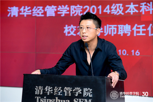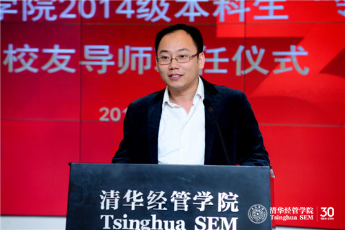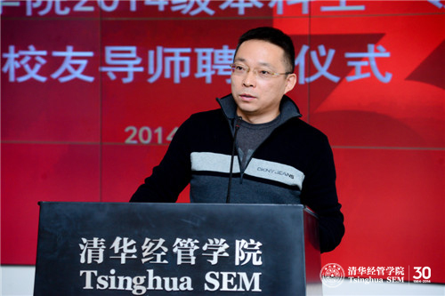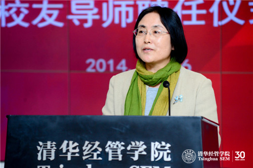 钱小军教授首先代表学院欢迎校友导师出席聘任仪式并介绍了学院近年来本科教育改革的情况。她说到:“学院本科教育改革今年9月获得国家级教学成果奖一等奖,这一重量级奖项的获得突显出永利集团88304官网在线登录特别是经管学院对本科教育的重视。”钱小军教授重申杨斌教授曾向校友导师提出的“五个一”要求,即每学期和学生面对面交流一次,每学期与学生共读一本好书,每年邀请学生参访一次自己的岗位,每年和学生出游一次,每年给学生写一封信。在此基础上,钱小军教授将“五个一”完善为“六个一”:每年请学生帮助做一件事。她指出校友导师对学生不仅仅是四年的陪伴,更应该是一生的指导,希望校友导师努力为学生提供接触社会的机会,帮助本科生更加深入地了解社会,得到更多课堂之外的教育,发扬清华薪火相传的传统。