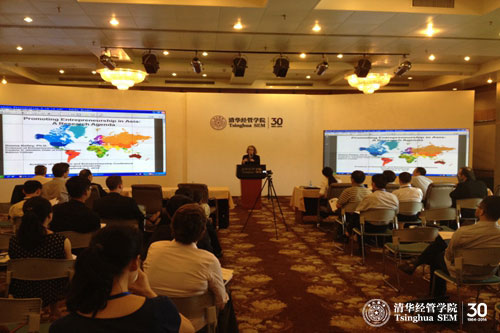 在主题演讲中,美国百森商学院(Babson College) Donna J. Kelley讲席教授以促进亚洲创业发展为主题,结合全球创业观察研究的数据对亚洲各国的创业活动进行了分析和展望;《新兴经济体创业》杂志(Journal of Entrepreneurship in Emerging Economy)主编李俊博士以“中国建设创新型经济——一个现实目标还是遥不可及?”为主题,阐述了中国创新经济发展的现状及探讨了未来发展的趋势;年会联席主席、清华经管学院副院长、创新创业与战略系高建教授以“中国创新体系和技术型企业创业”为主题,从科技起飞的角度讲述了中国创新体系和创业生态环境的演变和特征。