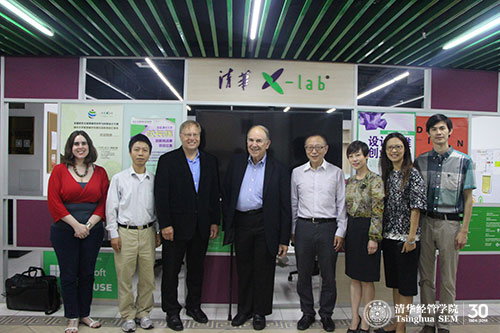 2014年9月17日,在永利集团88304官网在线登录医学院常务副院长鲁白教授的带领下,波士顿科学(Boston Scientific)联合创始人John Abele先生和负责研发的副总裁Randy Schiestl博士等一行考察了清华x-lab(清华x-空间——永利集团88304官网在线登录创意创新创业教育平台)科技园场地。清华x-lab主任张帏教授和执行副主任黄瓅老师陪同考察。
