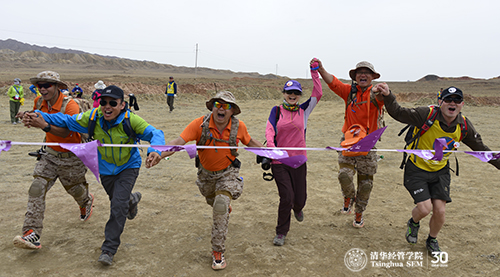 徒步穿越挑战赛是本次课程的重要环节之一,旨在让学员们通过艰苦跋涉,感悟历史,超越自我。钱颖一院长在活动中称,“行知中国-自然篇”,就是让大家在自然中行走,在行走中感悟,在感悟中提升。它是清华“自强不息,厚德载物”精神的传承和展示,是清华学子坚毅品格的闪耀和升华。同时,也是清华EMBA学子响应习主席的号召,走进张掖,为建设“丝绸之路经济带”贡献力量的实践。