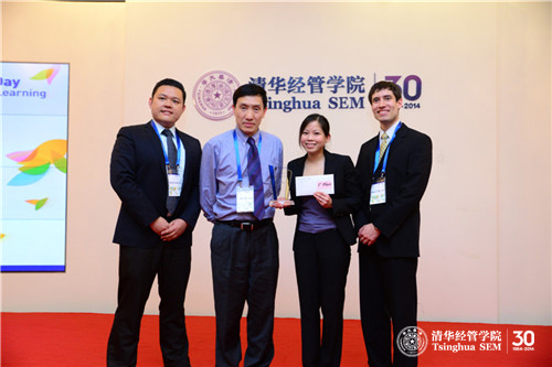麻省理工斯隆管理学院副院长黄亚生为第一名清华经管学院XCMG队颁奖