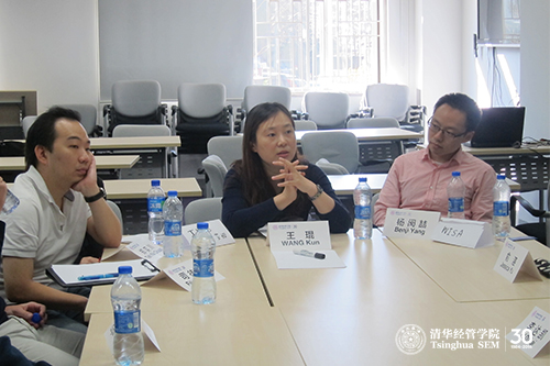 座谈会上,王琨教授分析了近年来国际学生的就业形式以及市场需求的变化,表示学院将帮助国际学生寻找更多的就业资源,并提供更多的就业帮助。作为国际MBA项目的授课教师,王琨教授非常关心学生的学习特点和个人发展需求,希望通过这次座谈会了解国际学生就业需求。