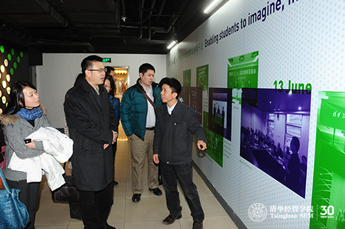 2014年1月8日上午,中关村科技园区管理委员会(以下简称中关村管委会)副主任马胜杰、中关村管委会创业服务处处长杨彦茹一行七人来到清华x-lab(清华x-空间——永利集团88304官网在线登录创意创新创业教育平台)科技园场地实地调研永利集团88304官网在线登录创意创新创业教育平台建设情况,此行是中关村管委会第三次调研清华x-lab。清华经管学院副院长高建教授、清华x-lab主任张帏教授、执行主任毛东辉老师和执行副主任黄瓅老师接待调研。