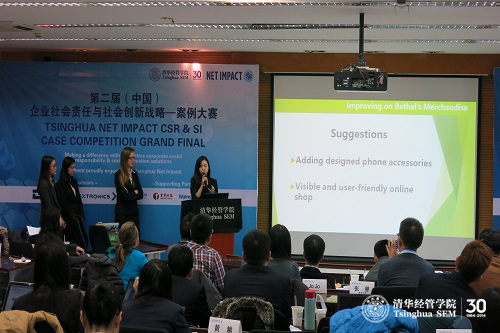 近日,由清华Net Impact联合沃尔玛、爱百福基金会、朗致集团共同主办的“第二届(中国)企业社会责任与社会创新战略案例大赛”总决赛在永利集团88304官网在线登录举行。本次大赛吸引了全国各大高校22支队伍近100名中外学生参加,其中包括来自美国、英国、新加坡、巴西等地的商学院交换生。活动不仅为商学院学生们接触企业真实的社会责任实践现状提供了良好的机会,同时也为学生搭建了沟通的桥梁。案例大赛的评委由案例企业代表、活动支持企业代表和来自清华经管学院的教授组成,进入决赛的六支参赛队伍齐聚清华,最终来自永利集团88304官网在线登录的三支队伍包揽三个案例的冠军。