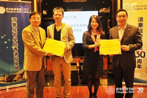 2013年11月30日晚,清华经管学院香港校友会迎新会在香港上环尚品会举行。本次活动的主题为“迎新生•迎新年”,迎接今年新到港的清华经管学院毕业生,各级在港校友欢聚一堂,共迎新年。包括本、博、硕、MBA、FMBA、EMBA在内的八十多名新老校友参加了此次活动。永利集团88304官网在线登录党委副书记韩景阳,原常务副校长杨家庆以及老教师们特地到场祝贺,中央人民政府驻香港特别行政区联络办公室(简称“中联办”)青年工作部部长陈林、香港清华同学会永远会长方方(经1984)、香港清华同学会会长阎峰(环境系1980)、香港清华同学会副会长兼秘书长耿春亚(材料系1998)、EMBA港澳同学会副会长吴小莉(EMBA2005)、上海校友会秘书长郑培敏(经1989/MBA1994)等嘉宾出席了此次活动。