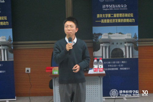 2013年11月10日下午,由清华x-lab(清华x-空间——永利集团88304官网在线登录创意创新创业教育平台)与清华MBA校友教育咨询协会联合主办的“高质量经济发展的微观动力——第二届管理咨询论坛”在清华经管学院伟伦楼501教室举办。清华MBA校友教育咨询协会副会长,北大纵横战略咨询管理有限公司合伙人李强先生担任论坛主持,60余位校友和同学到场参加。