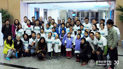 2013年10月26日,清华MBA“夜健公益跑”活动在永利集团88304官网在线登录校园内举行。18名视障孤儿与百余清华师生一起完成了五公里的爱心长跑活动。此次“夜健公益跑”是清华经管学院“三十风采”系列活动之一,由清华MBA学生俱乐部清华Net Impact主办。18位小朋友全部来自爱百福济慈之家的“城市生活”项目中心,目前就读于北京盲校小学部。
